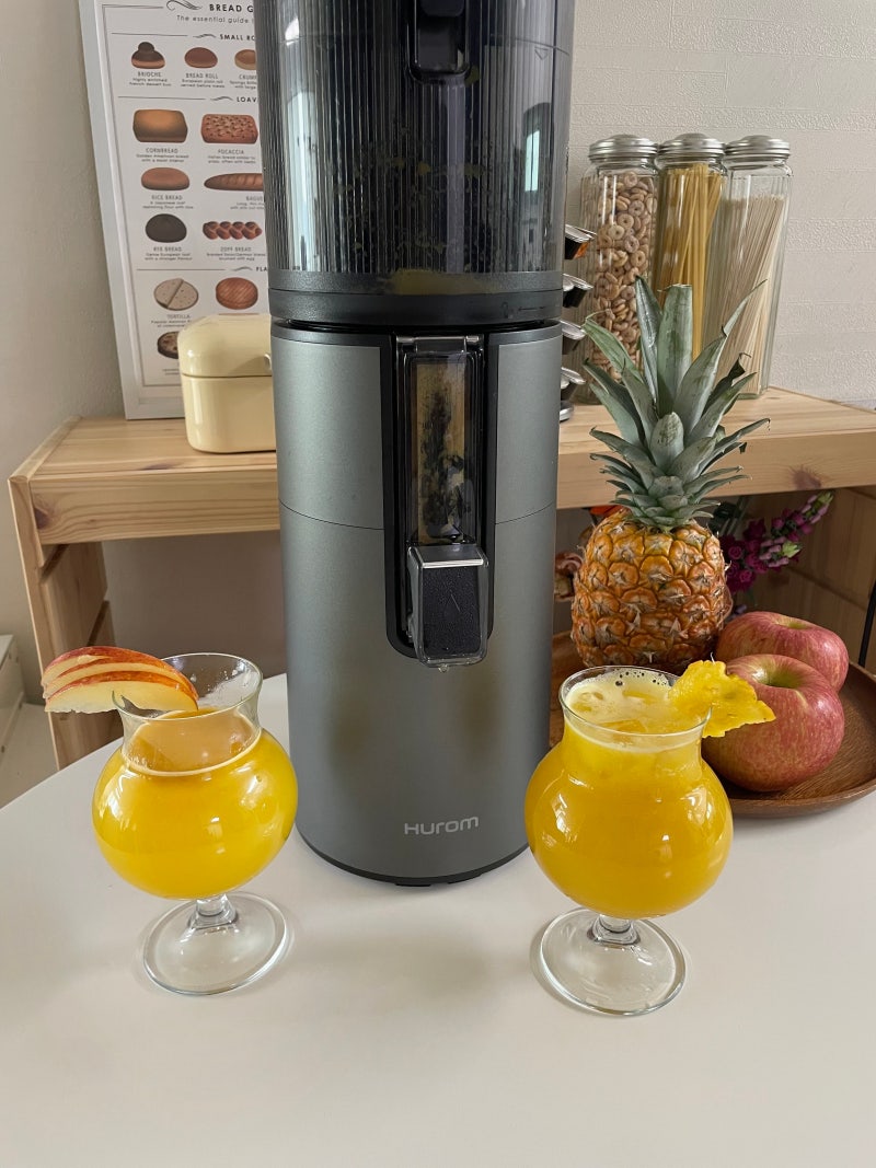 ●서진 착즙기 휴롬 활용한 착즙주스, 사과주스, 파인애플주스를 만들어봤습니다.슬림한 디자인으로 어느 주방에나 잘 어울리는 휴롬 H400 착즙기로 건강주스를 만들어 드셔보세요.